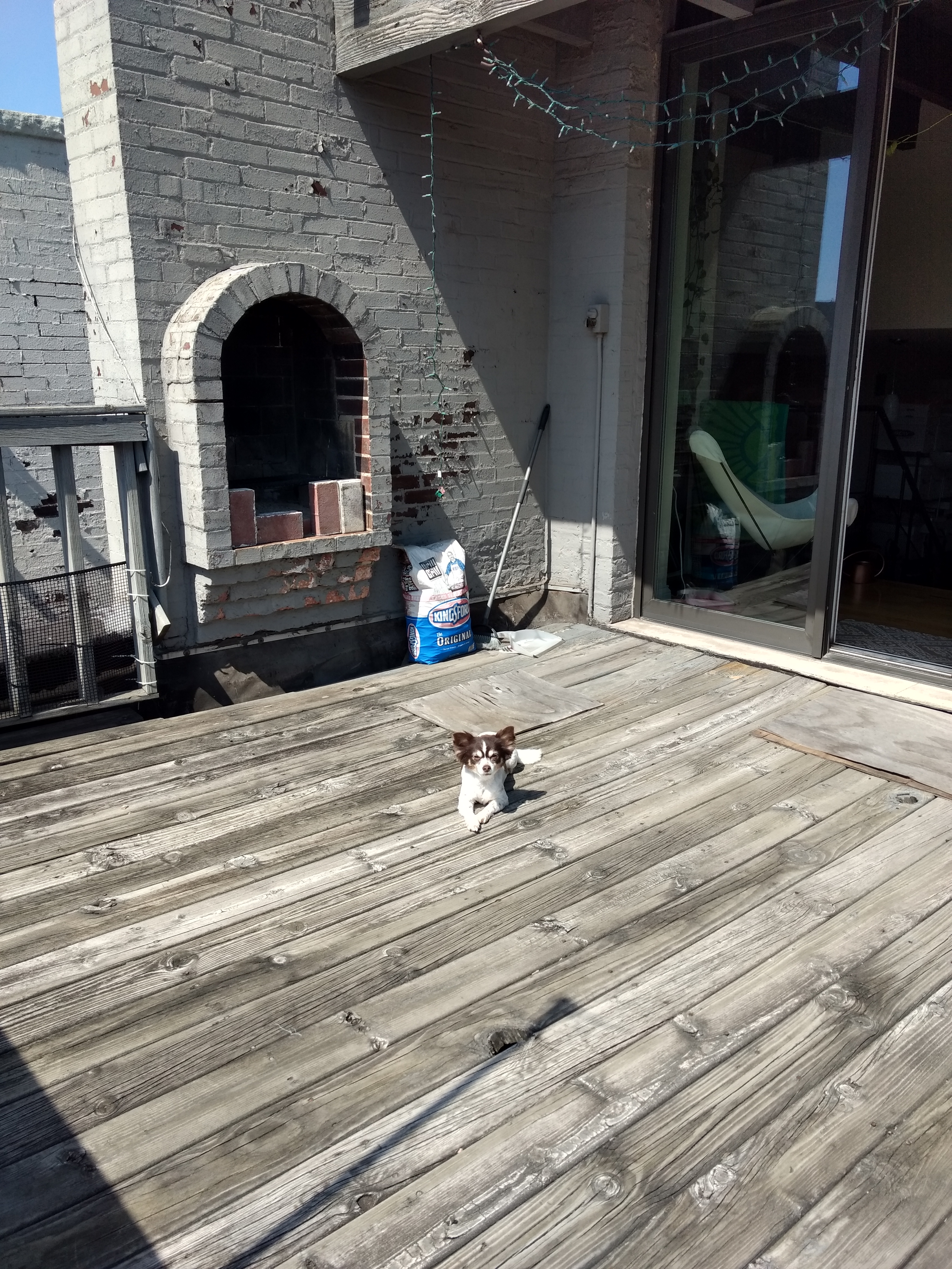 The deck itself was just as big as any one of our previous apartments, and the view was something I can only hope to one day enjoy again. It was breathtaking. Skyline to the North, South, East, and West, sunrise and sunset every day, and a direct view of every parade, naked bike ride, and dog that walked by. And on the 4th of July we had 2 dozen fireworks shows to choose from. I loved it so much I recorded a podcast out there for a year. Sun and air, Mooge loved it.
