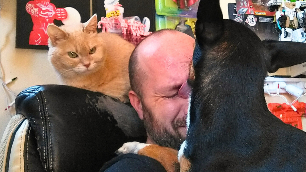 But in all seriousness, and not to diminish anyone’s allergy experience, nor mine, but was it all in my head? There’s no way all of it was in my head because 7 to 13-year-old me really had trouble breathing at times. And regardless of how clean my mom kept the house, I still absolutely needed my inhaler after snuggling into Molly or Pumpkin or Slobber or Little Bob. But I do think that there was a point where, after Yoda of course (that dude was no joke), I’d mostly grown out of my allergic reaction to the list of stuff the doc told 7-year-old me I was allergic to. I eat anything I want, I roll around on the grass with my pups, and I Dr. Evil it up with any cat that will let me. But through all that, I don’t think my brain would let me truly let go of my inhaler.