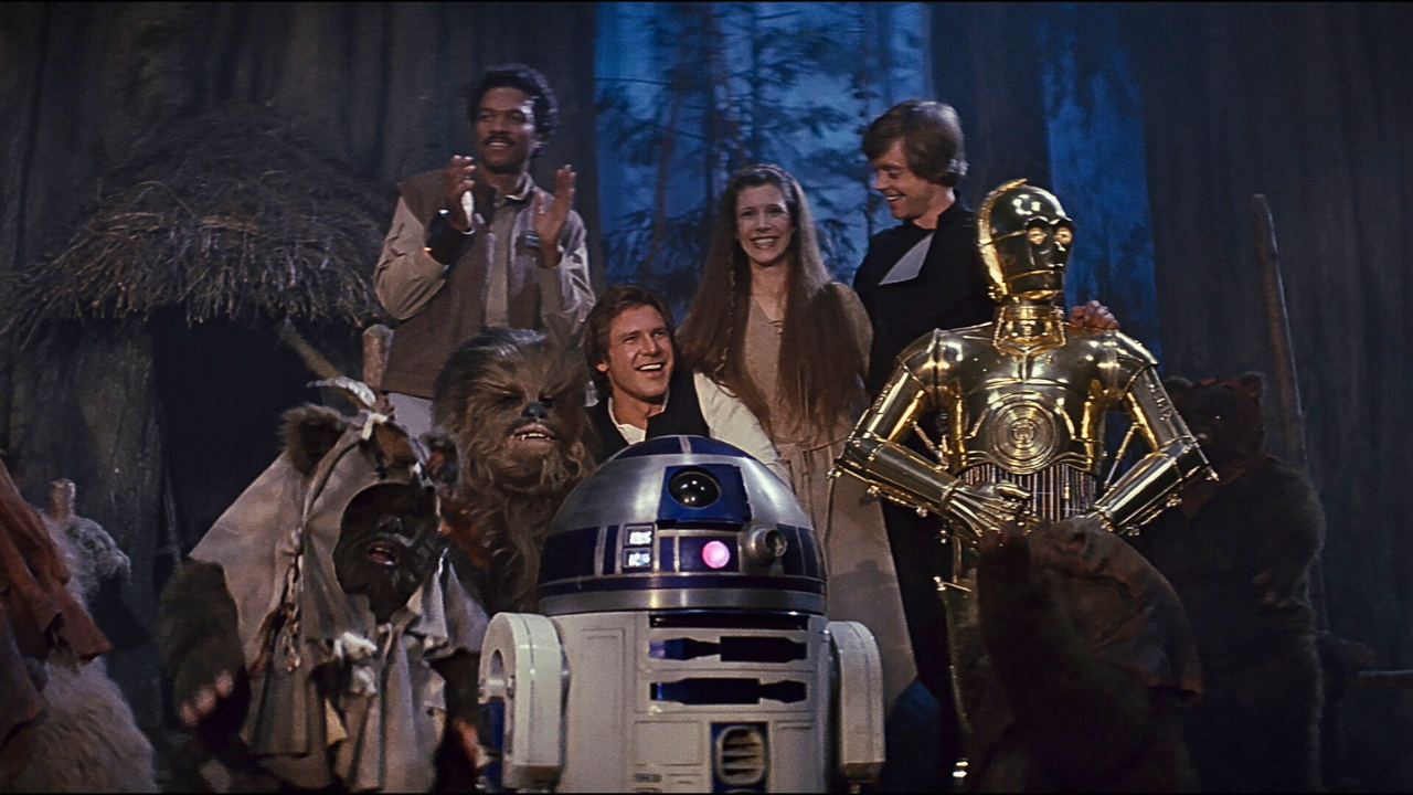 Acts two and three of the movie introduce us to the Ewoks (who without, this movie wouldn’t have half the heart it has), it gives us one of the most beautifully modeled actual “star wars” in all of Star Wars led by the biggest scoundrel in the galaxy in General Lando Calrissian, and shares with us two of the most heartfelt and sincere moments in the entire Star Wars franchise: the death of Yoda, and the death of Anakin Skywalker.