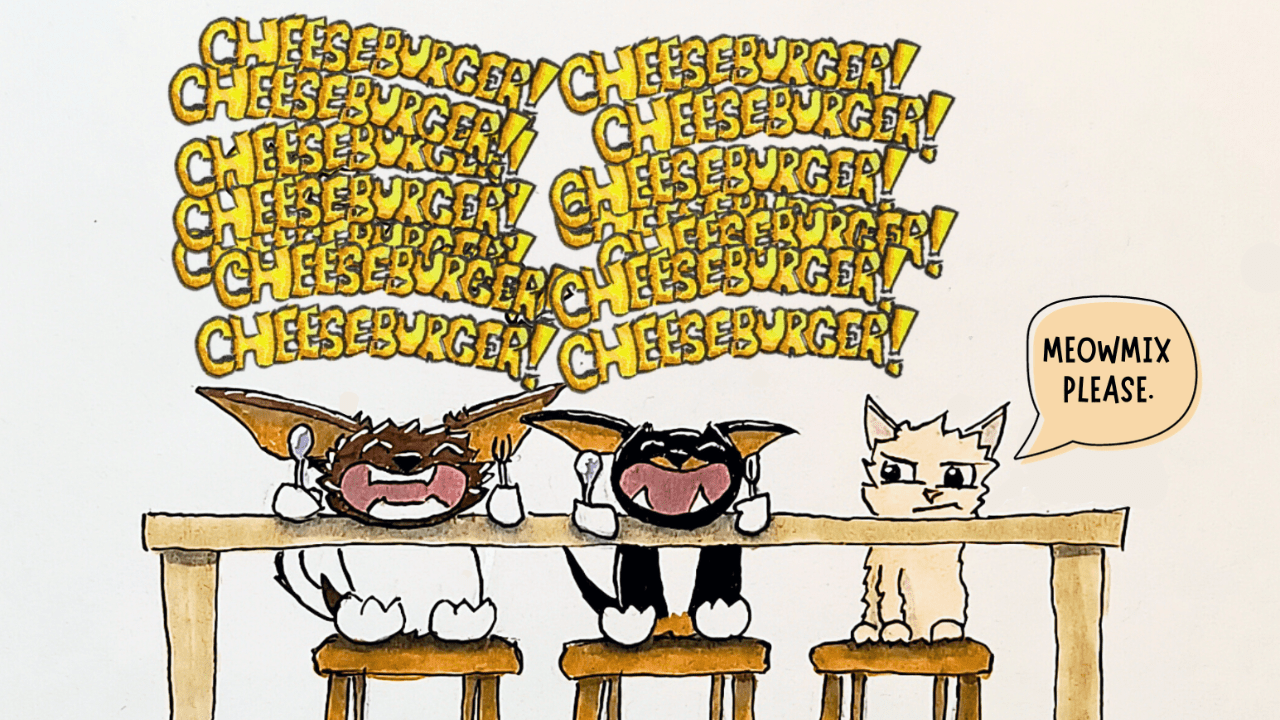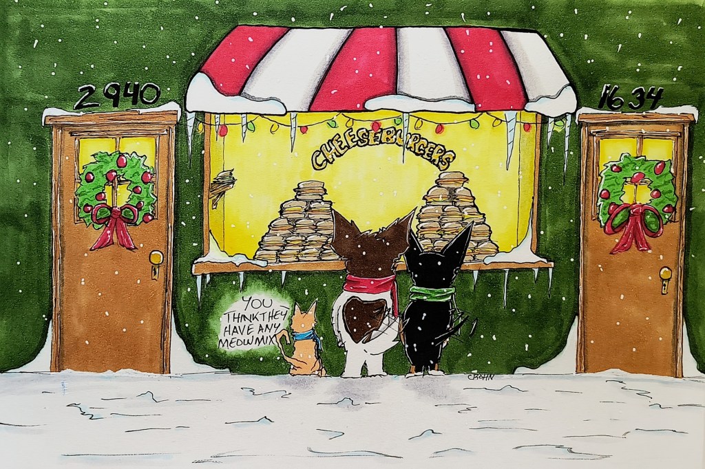 So as for the books, I’m really close to feeling confident enough with my art to start in on the story, and if you’re an Instagram user you can follow the journey on @acdrawstuff and @meandmoogeegoom, or hit the link below. Like I said, I’m drawing every day, and usually it’s a little cartoon with the three of them doing something like peeing on someone they shouldn’t or trying to figure out how to get more cheeseburgers. The entire practice has been the most therapeutic activity that I’ve done since losing Mooge. It’s all about the cheeseburgers. I tried everything I could think of to deal with the grief, from talking to someone (or anyone that would listen) to leaving notes around the apartment reminding myself of the great life we had together.
